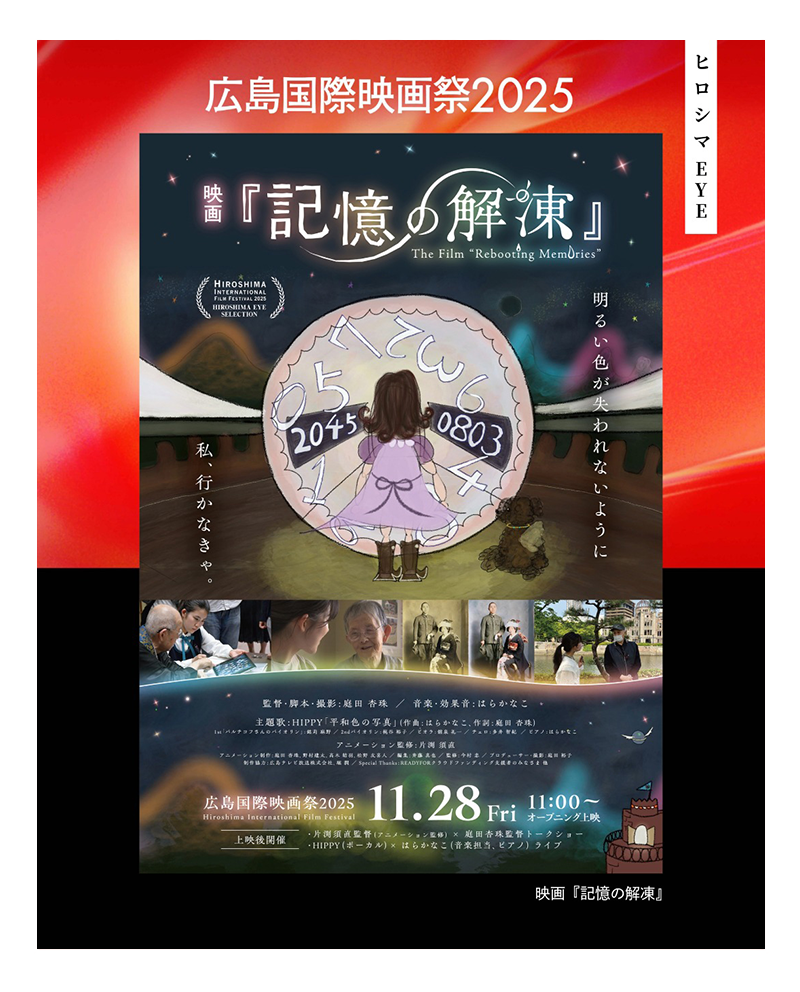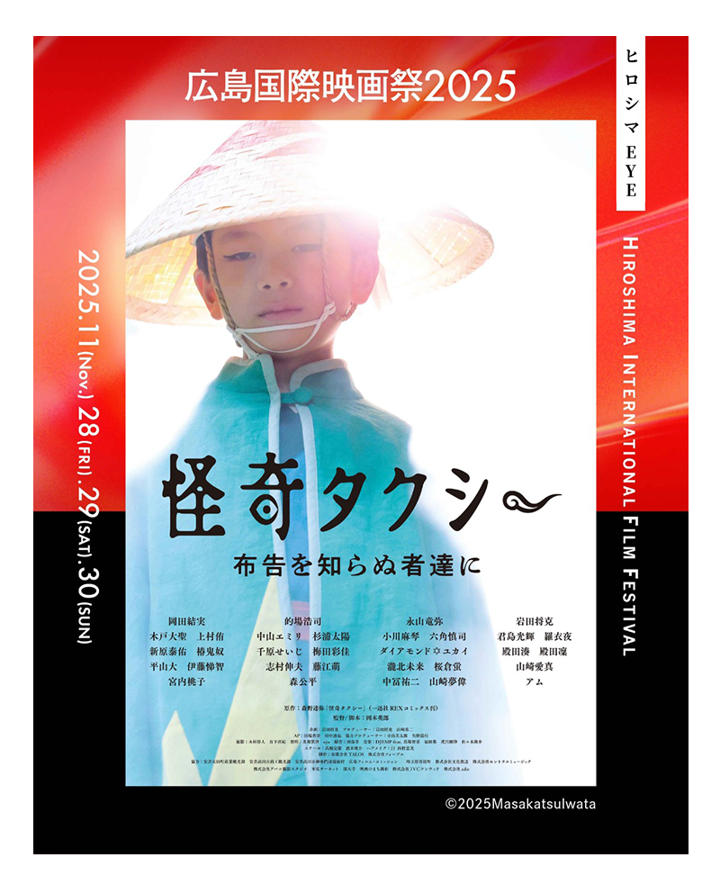 NEWSVIEW MOREVIEW MORE 2025.11.08 国際短編映画コンペティションB ノミネート作品 2025.11.07 国際短編映画コンペティションA ノミネート作品 2025.11.06 映画『怪奇タクシー 布告を知らぬ者達に』ワールドプレミア上映決定 2025.11.05 韓国を代表する4人の監督によるアンソロジー映画『ザ・キラーズ』ジャパンプレミア上映決定! 2025.11.03 庭田杏珠監督作品、映画『記憶の解凍』、広島国際映画祭2025オープニング上映決定 2025.11.01 広島国際映画祭2025 全プログラム発表!