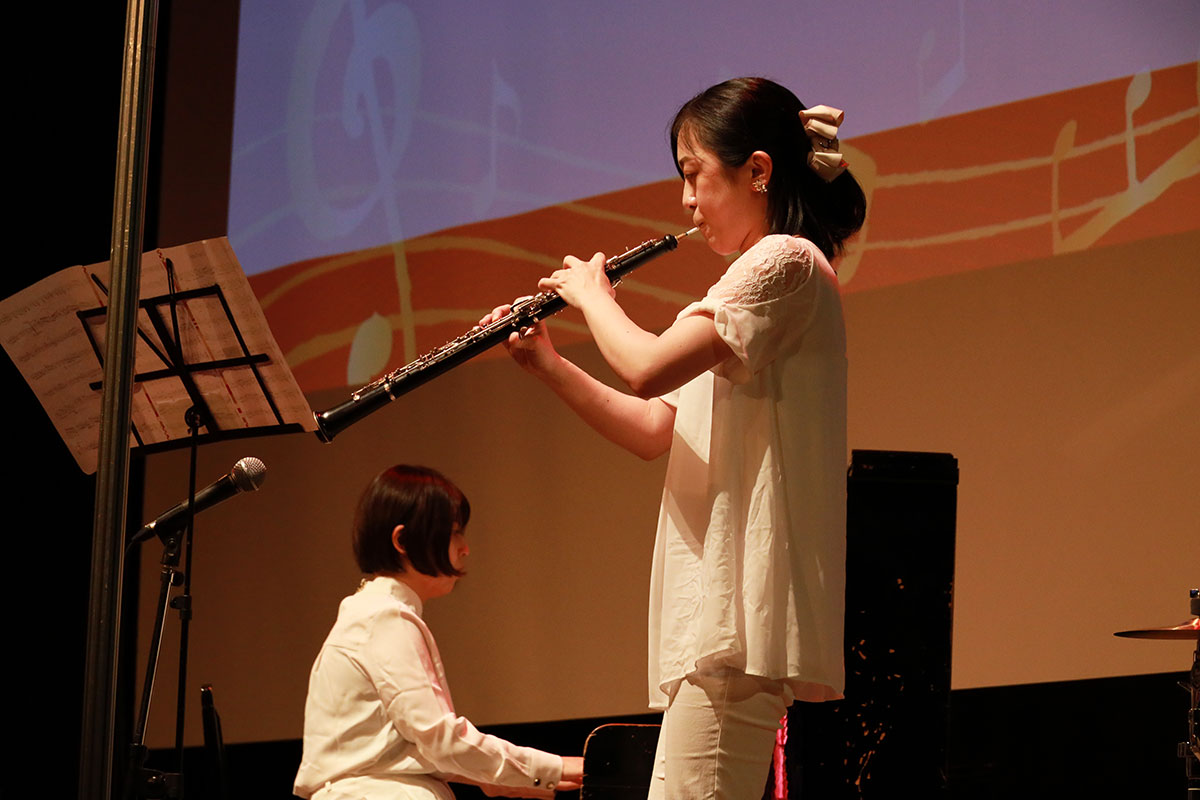 Then, five groups of musicians living in Hiroshima began to play. Then, five groups of musicians living in Hiroshima began to play. At first, professional musicians, Yuko Kishimoto Trio played the original song "Bright'n'Lovely". After the performance when she was asked about the piano, she highly evaluated it as "a light touch and beautiful sound for an 88-year-old piano born in 1932 that was not ruined by the atomic bomb." Next, Ms. Momoko Murokawa, a first year graduate student at Elisabeth University of Music performed Schubert’s Piano Sonata No.13 in D major D664 Op.120 First movement. She also had a good reputation for her clear sound and good bass.