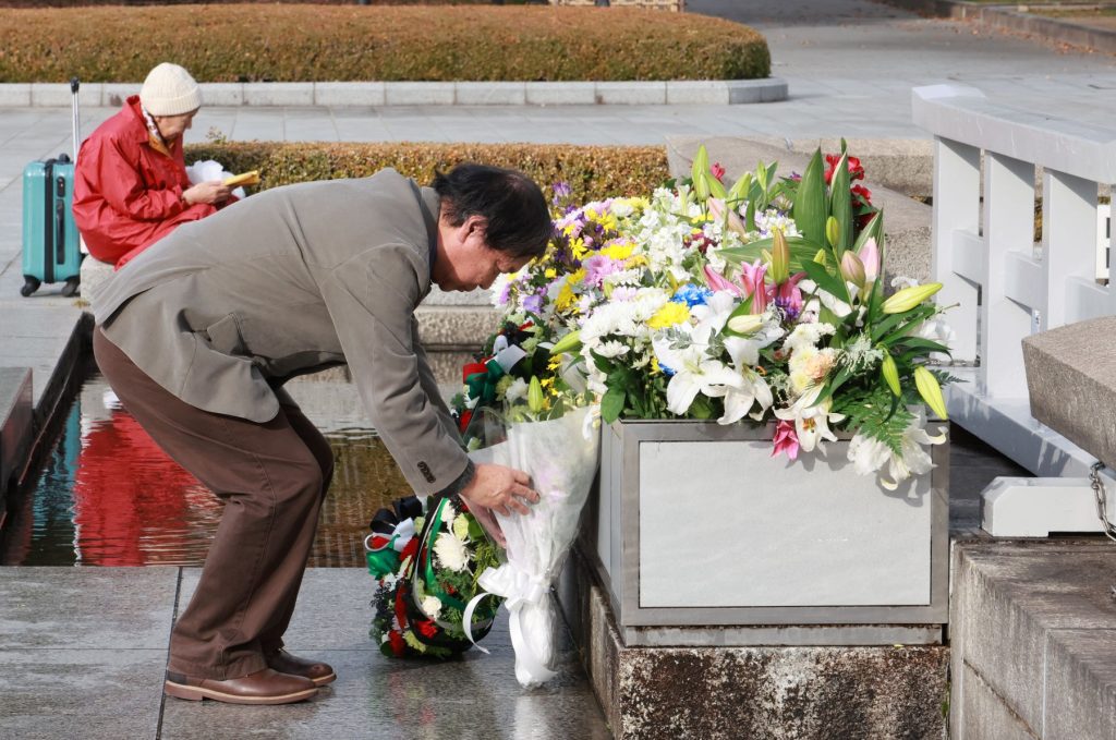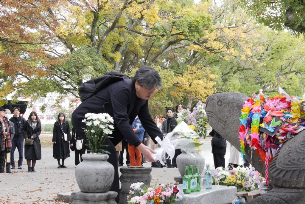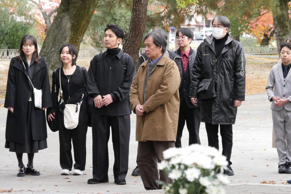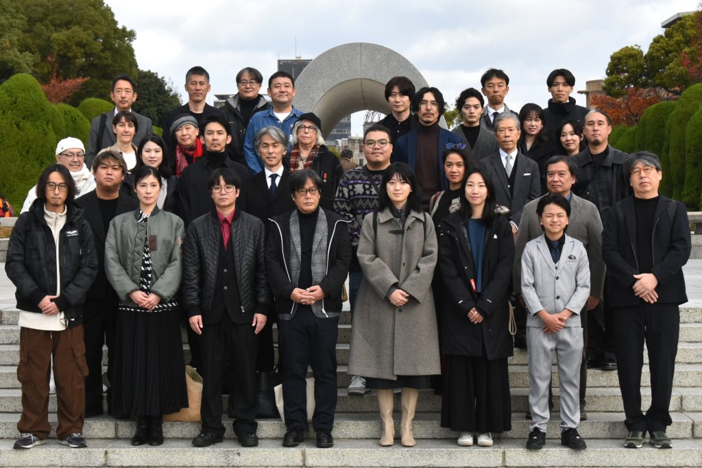 11月28日(金)映画祭開幕式前の午前9時より、広島平和記念公園で慰霊献花が行われました。日本人だけではなく、外国の方を追悼する碑にも周りました。 献花には『この世界の片隅に』の片渕須直監督をはじめ、映画祭にご参加いただく監督やプロデューサーの方々が、世界平和の祈りを捧げました。