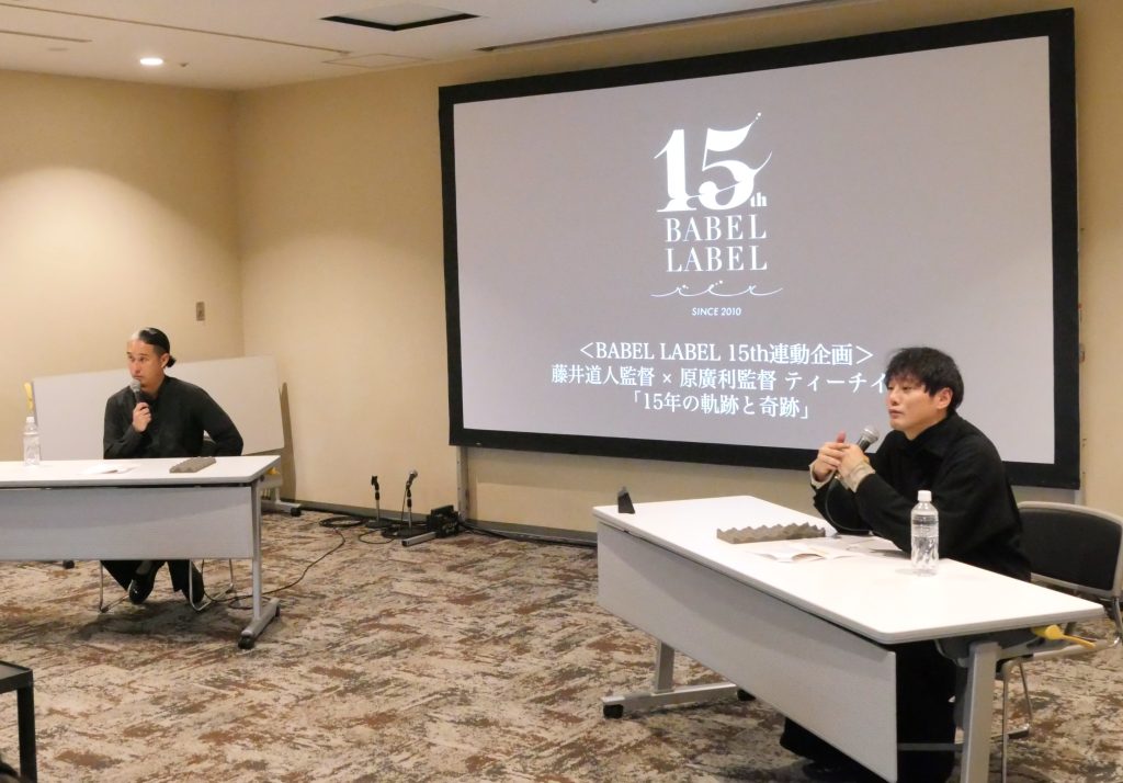 コンテンツスタジオ「BABEL LABEL」設立から15年、所属の日本映画界をけん引する藤井監督と、日本大学芸術学部の後輩 原監督のトークは「何も成長してないよねぇ」と謙遜しつつ、設立から現在までの思い出話に花を咲かせました。