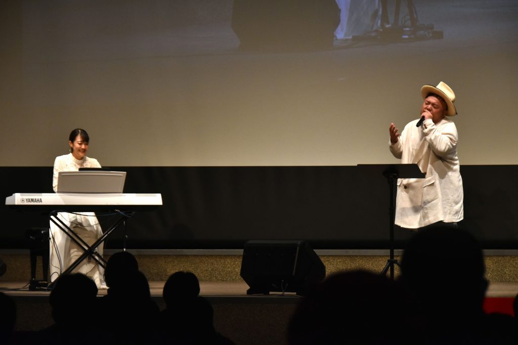 お二人のトークの後、シンガーソングライターのHIPPYと作曲家/ピアニストのコラボレーションで劇中歌「平和色の写真」と「COLOR OF MEMORY」が生演奏で披露され、観客を魅了してトークは終了しました。